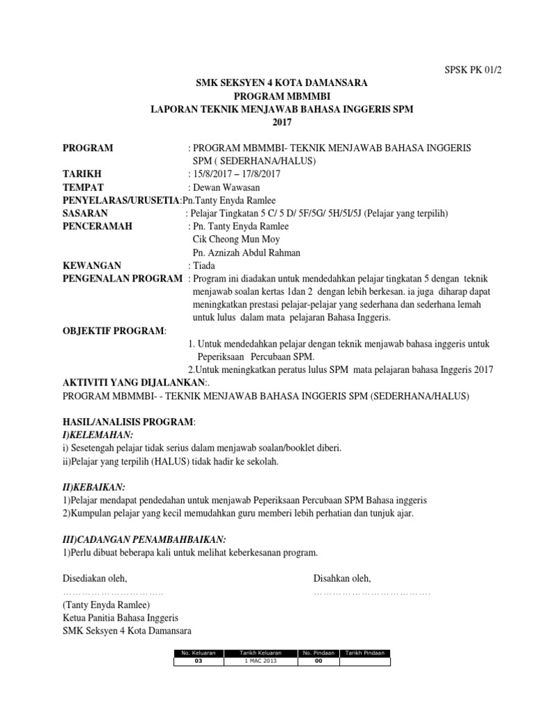 Laporan Teknik Menjawab Spm 2016 Pdf